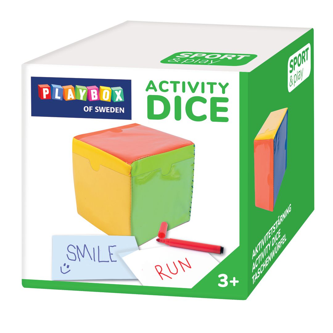 Färgglad aktivitetstärning med genomskinliga fickor på sidan. Aktivitetstärningen ger oändliga möjligheter för att skapa lärorika uppgifter och lekar till barnen. Skriv lappar med olika aktiviteter och lägg i fickorna, till exempel hoppa som en groda eller slingra som en orm. Tärningen är tillverkad i skum så att den inte låter när den åker golvet. - Mått: 15x15x15cm, - Färger: grön, orange, lila, röd, gul, och blå - Material PU och EVA - PVC-fri