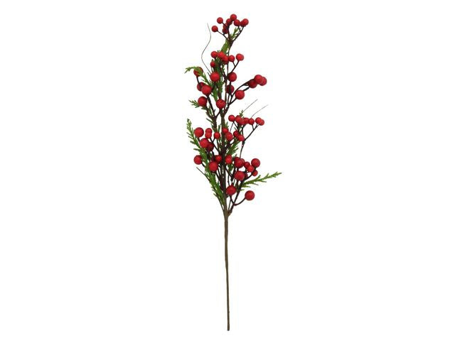 Naturtrogen dekorationskvist bestäende av små rönnbär och gröna kvistar. Styrofoam-material som gör kvisten lätt och smidig att dekorera med. - Längd: 50 cm